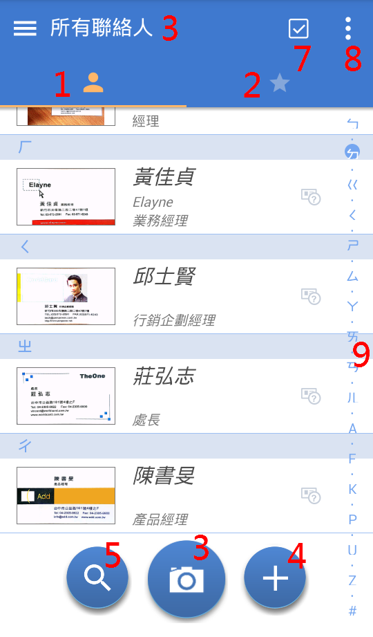 即開始行名片辨識,辨識完後即可在聯絡人列表中看到。