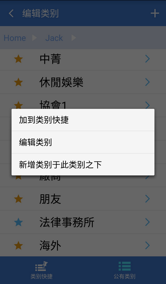 1. 选取并长按类别名称,选择﹝加入类别快捷方式﹞即可于﹝类别快捷方式﹞页面看到该类别。