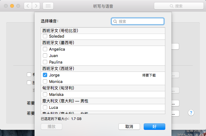 在Mac OS X 10.8~10.9的系统上,如需要英文以外的发音功能,请先照以下步骤进行设定: