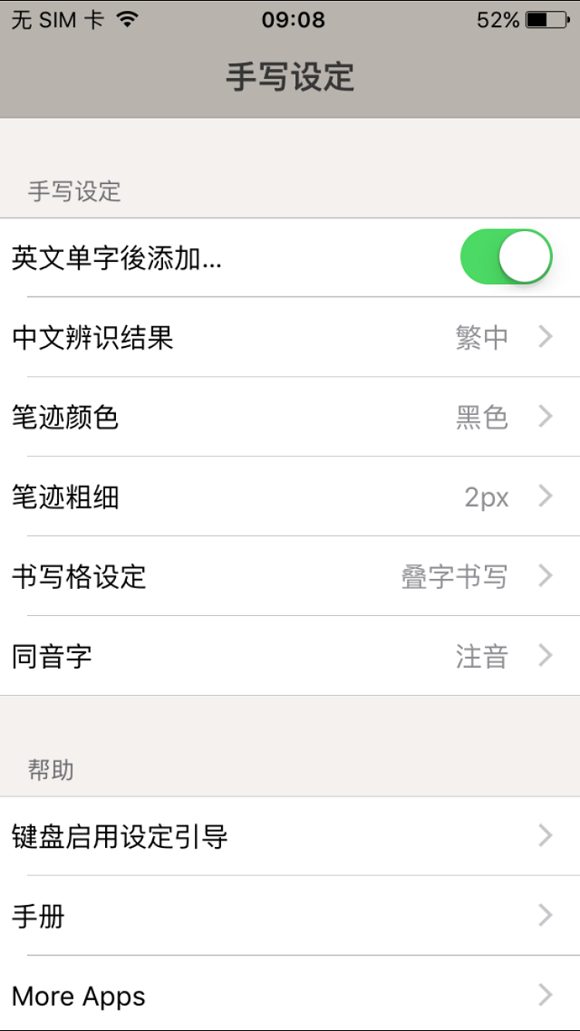 您可选择要让手写识别的结果全部用繁体字还是简体字显示,或者是要写繁体字时就显示繁体,写简体字就显示简体的混合设定。