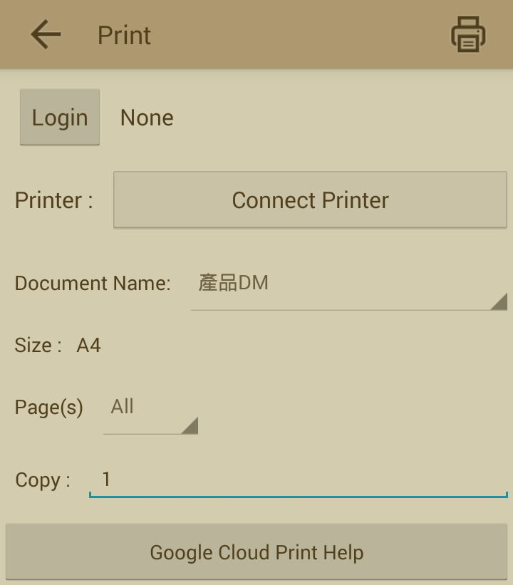 to open the print settings, and please log in your Google account first, then choose the printer you want to use,