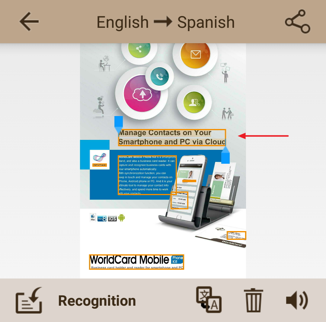 to open the menu, and tap [Recognition] to choose the language of the document,