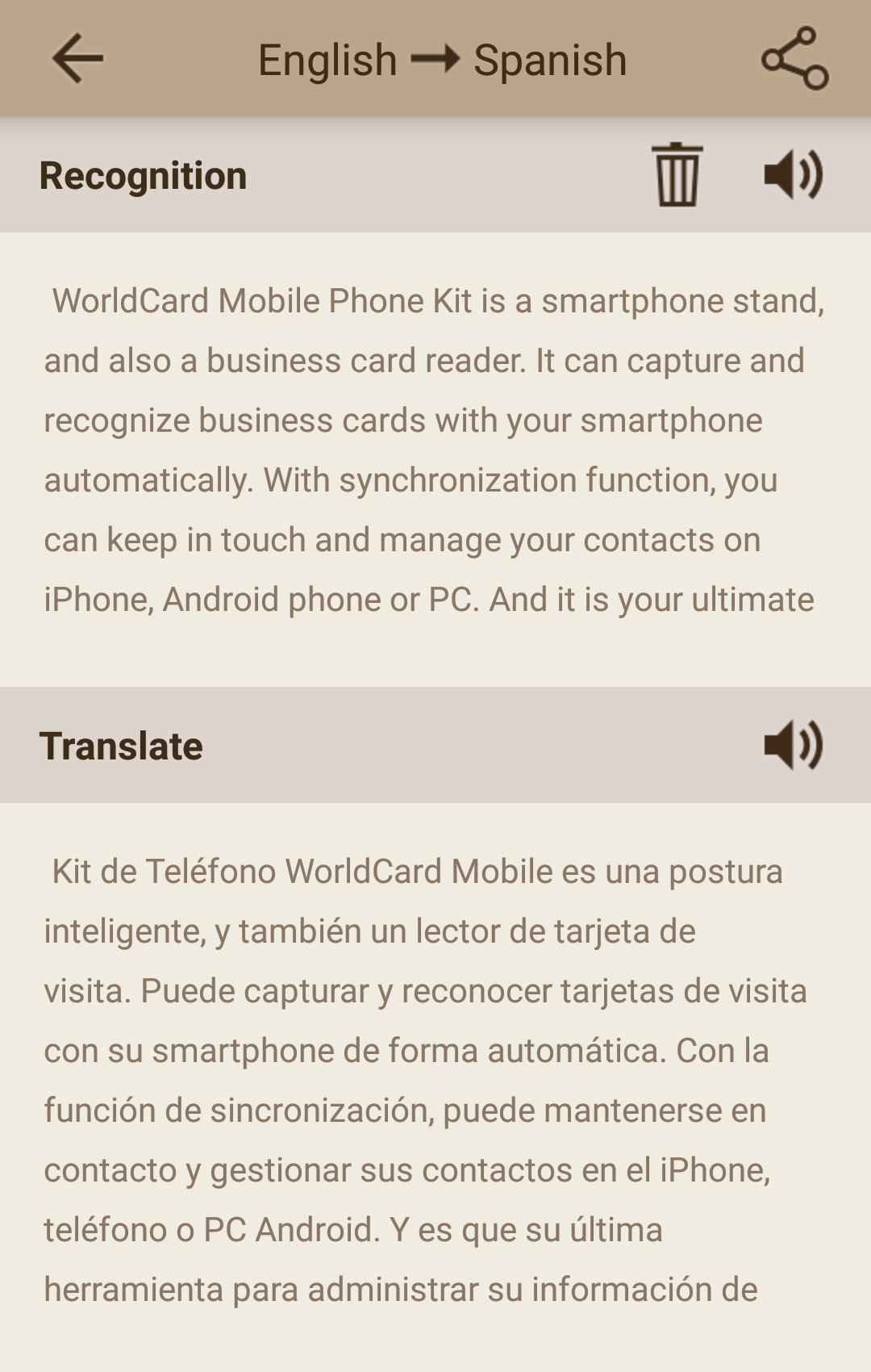You can also translate the recognized characters, please tap