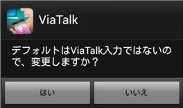 2. 「ViaTalk入力」にチェックした後、アプリに戻ると再度手順1の確認ウィンドウが表示されますので、 「はい」をタップし、「ViaTalk入力」を選択してください。