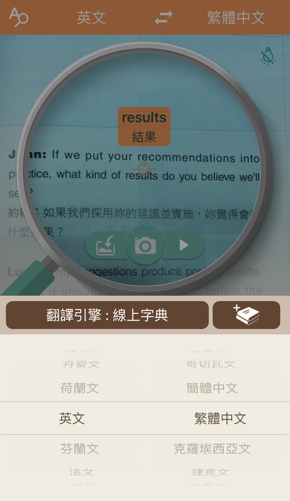 除了「即視即譯」的功能外,如果您有大量的字需要查詢,您可以透過手機鏡頭拍攝或從相簿中載入圖片,逐字點選線上查詢。