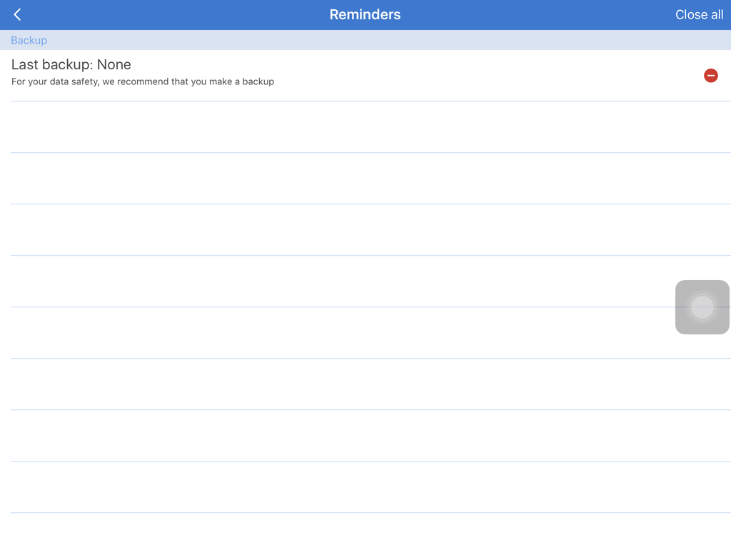 Please remember to backup your data regularly to ensure the data's safety, you can choose to save the backup file to local storage or cloud storage like Dropbox and Google Drive.