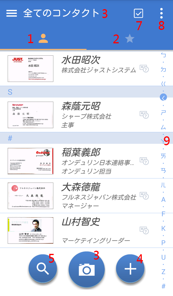 をクリックして名刺認識が始まります。認識結果は連絡先リストに確認取れます。