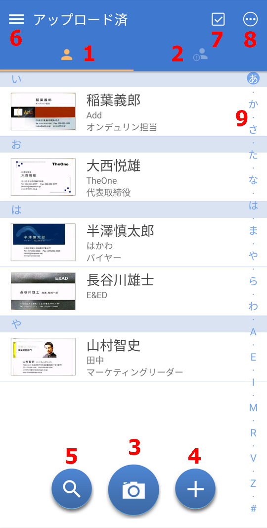 をクリックして名刺認識が始まります。認識結果は連絡先の未アップロードで表示されます。