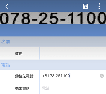 をクリックして名刺認識が始まります。認識結果は連絡先リストに確認取れます。