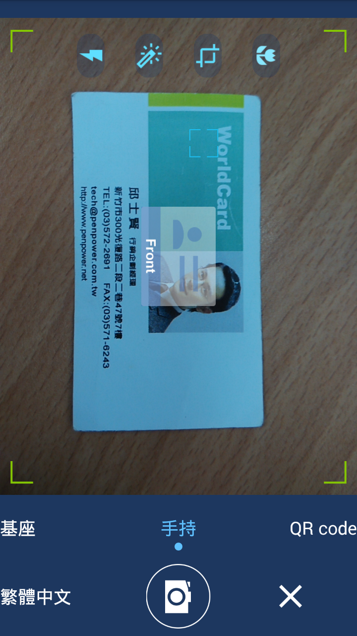 來對圖片做亮化以增加文字辨識度,或是移動跟縮放圖中的綠色框框把名片選起來,然後點