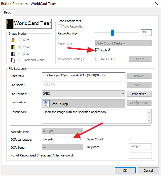 whether you want to scan single-sided or double-sided business cards, and choose