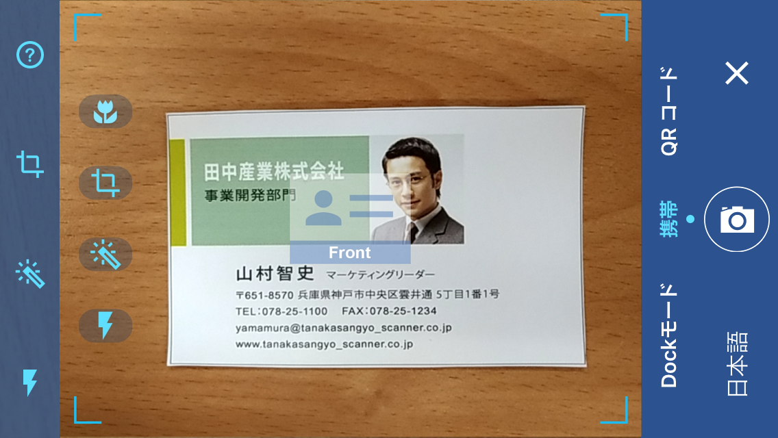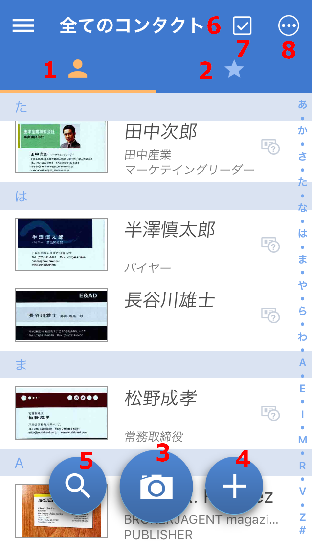 をタップすると名刺認識が始まります。追加した連絡先は連絡先リストで確認できます。