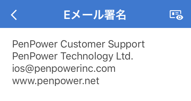 メニューから [Eメール署名] を選択します。コピーした署名が自動的に表示されるので、