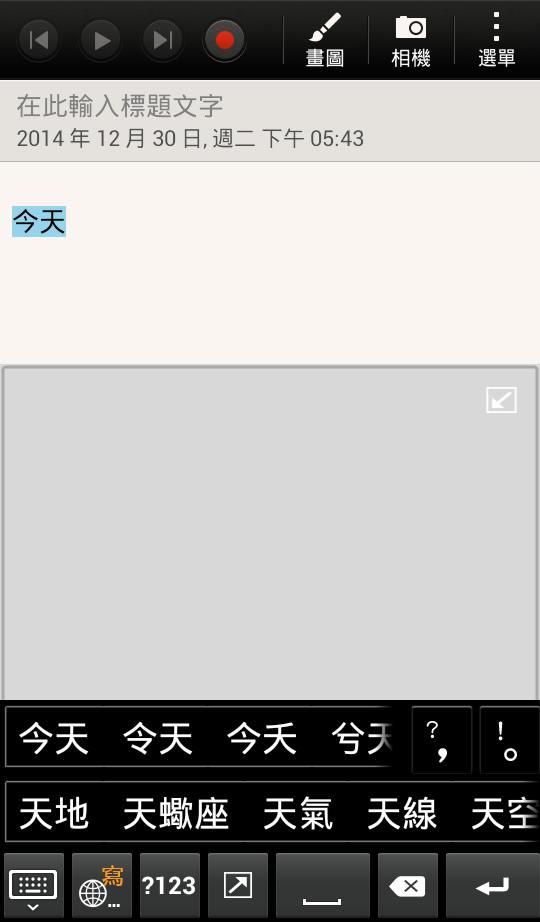 - 書寫過程中,若需要輸入標點符號,您可以點一下